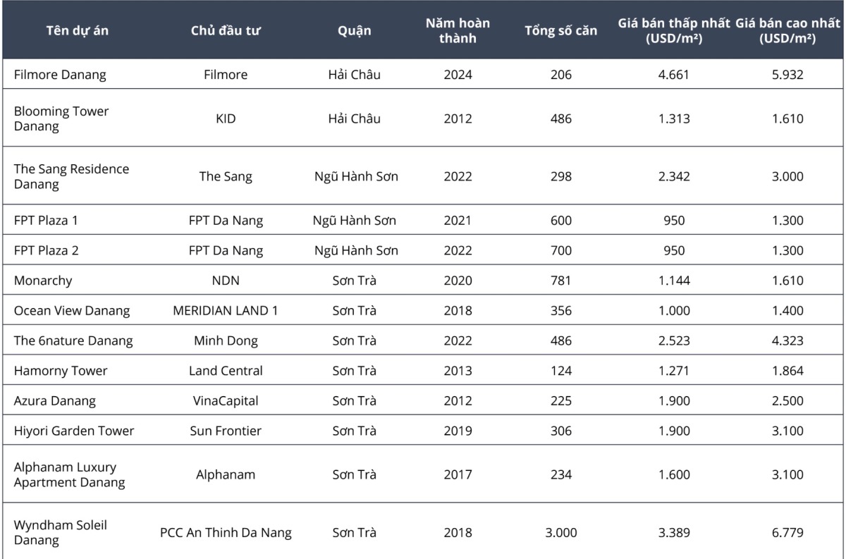 Báo cáo mới đây của Avison Young chỉ ra, thị trường căn hộ Đà Nẵng tiếp tục sôi động ở phân khúc cao cấp và hạng sang, tập trung tại các vị trí đắc địa ven biển Mỹ Khê, trục Bạch Đằng và Ngô Quyền. Giá sơ cấp trung bình ổn định ở mức 3.000–3.200 USD/m2 đối với các sản phẩm mới ra mắt.
