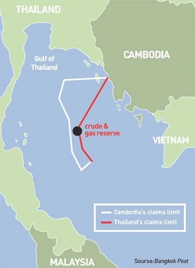 - Vịnh Thái Lan thì lại là nguồn dầu khí khổng lồ, tương đương nhu cầu năng lượng của hai nước trong 20-30 năm tới. Thái Lan phụ thuộc sâu vào khí đốt (⅔ năng lượng là điện từ khí đốt) nên khu vực này là huyết mạch năng lượng của Thái Lan. Campuchia hiện vẫn phụ thuộc nhập khẩu điện và xăng dầu từ Thái nên cũng muốn tự chủ. Campuchia do đó nghiêng về Trung Quốc để được hỗ trợ về hạ tầng cảng và khai thác dầu. Thái lại liên kết với Mỹ và Nhật vì Mỹ và Nhật đều không muốn Trung Quốc độc quyền trong khu vực.