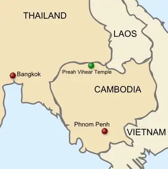 Khu vực đền Preah Vihear nằm ở vùng biên giới Thái và Camp