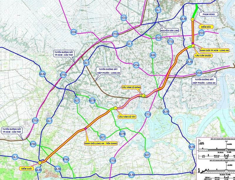Hướng tuyến Quốc lộ 50B nối TPHCM – Long An – Tiền Giang